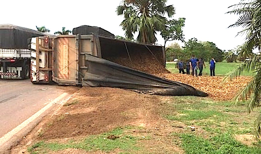 O tombamento do último vagão de uma carreta carregado com cavaco de madeira ocorreu, há pouco, na rodovia federal, na entrada da avenida dos Tarumãs, na região central. A carreta estava seguindo sentido Sorriso quando ocorreu ao acidente. Ninguém ficou ferido.