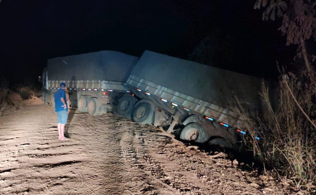 Vagão de carreta sai da pista e rodovia é interditada em Sorriso