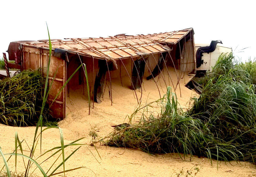 De acordo com informações de um agente, o caminhoneiro havia acabado de carregar a soja e estava seguindo para o porto de Mirituba, no Pará. Ele contou que percebeu o momento que o último vagão se soltou e ficou preso apenas em uma corrente de segurança. Com isso, devido ao peso, saiu da rodovia, puxou o primeiro vagão e acabaram tombando.