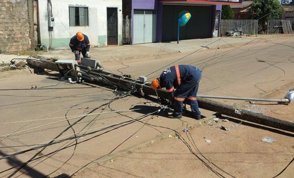 Veículo derruba poste em Peixoto de Azevedo (Ediney Menezes)