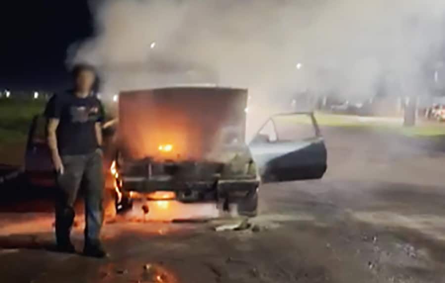 Um VW Gol 1000 branco foi avariado após pegar fogo, ontem à noite, nas imediações da avenida Cerrado, no bairro Parque das Emas. O Corpo de Bombeiros informou que ninguém se feriu.