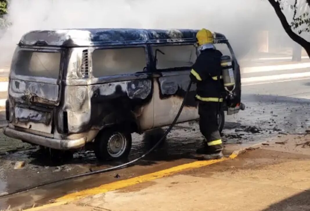 Uma VW Kombi foi completamente destruída pelo fogo, ontem à tarde, na Avenida Tessele Júnior, no bairro de mesmo nome. O condutor do veículo relatou para a equipe do Corpo de Bombeiros, que, ao passar por um quebra-molas, observou que o veículo começou a pegar fogo. Ele imediatamente parou e telefonou para a cooperação.