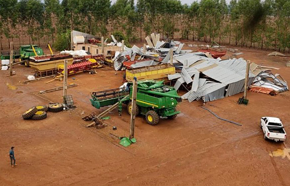 O proprietário da fazenda, Jeison Lamera, detalhou, ao Só Notícias, que a ventania foi tão forte que chegou a derrubar pilares do barracão em cima de duas colheitadeiras. Os ventos ainda empurraram três transbordos (maquinário utilizado na colheita), que atingiram uma plantadeira.