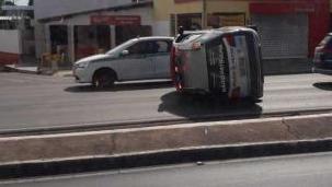 Uma viatura da Polícia Militar capotou após passar por uma lombada na avenida Miguel Sutil, em Cuiabá, hoje à tarde, e deixou um policial ferido. Ele estava sozinho no veículo, e foi encaminhado ao Pronto-Socorro de Cuiabá com escoriações no ombro esquerdo.