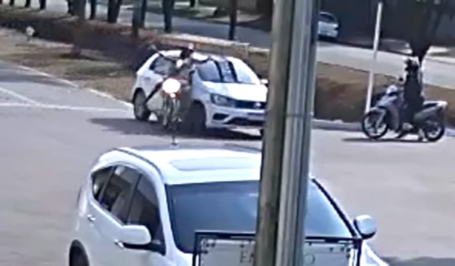 Em imagens registradas por câmeras de segurança nas proximidades, é possível notar que ambos trafegavam pela Ingás sentido avenida dos Flamboyants, quando a motociclista que estava na faixa da direita, realizou conversão à esquerda, colidindo com o automóvel que seguia pela faixa esquerda.