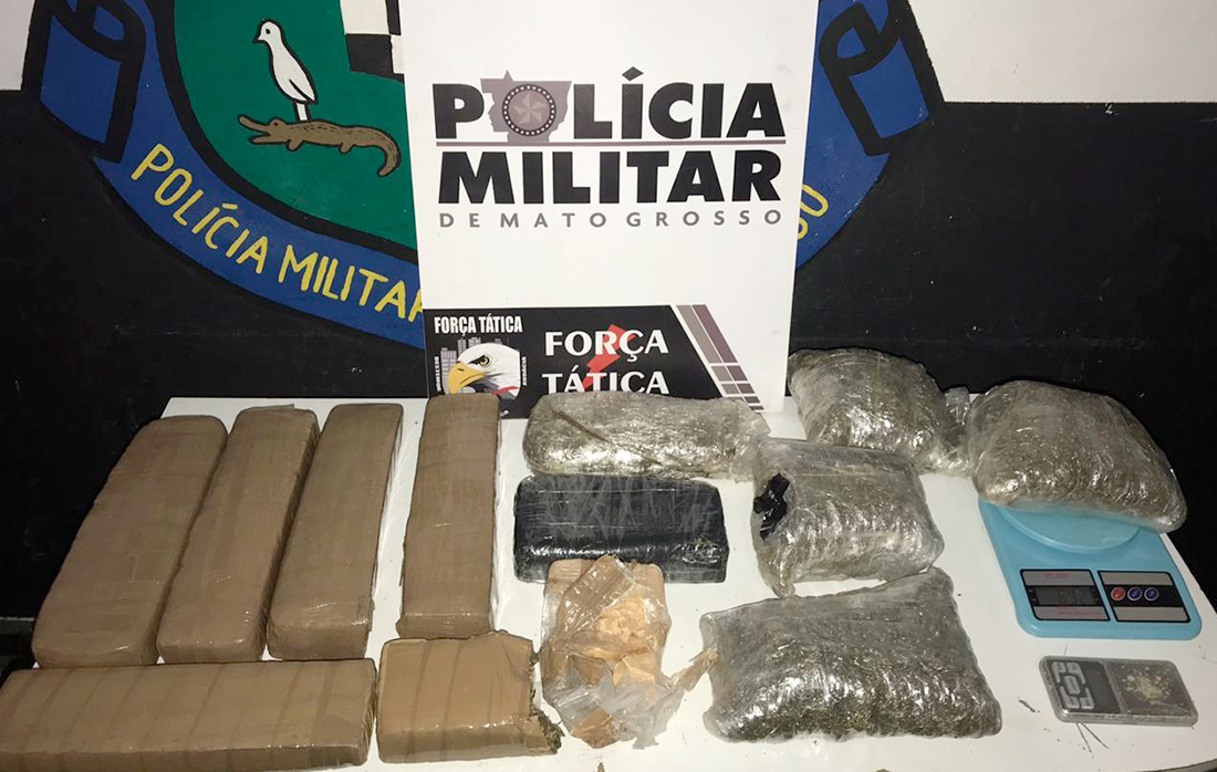 A Força Tática da Polícia Militar prendeu, ontem, o suspeito de cometer tráfico de drogas. Durante a ação, na rua Nilson Basso, residencial Panamby, foram apreendidos cinco tabletes de maconha, cinco pacotes médios da mesma substância e uma porção (totalizando 9,42 quilos), além de um tablete grande e outro pequeno de pasta base de cocaína e uma porção da droga (totalizando 1,3 quilos).