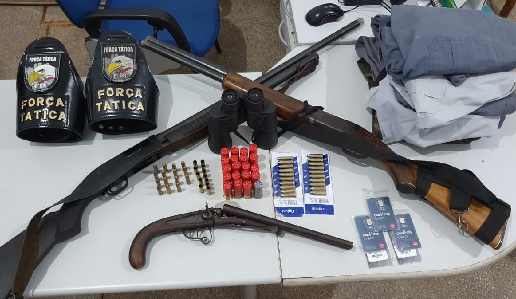 Dentro do imóvel, os policias encontraram ainda cinco chips de celular, um binóculo, três fardas completas da PM e uma farda do Exército brasileiro.