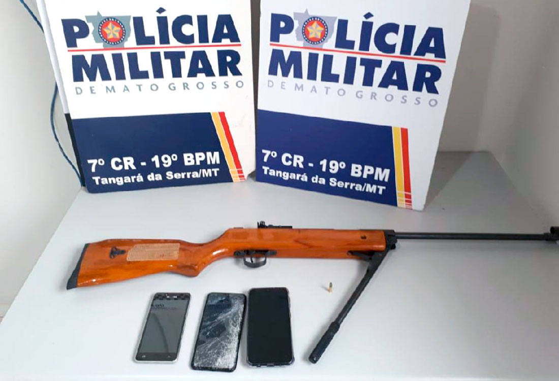 Uma equipe da Polícia Militar prendeu, ontem, um casal, sendo a mulher por agressão e um homem por porte ilegal de arma de fogo, na área central da cidade de Tangará da Serra (239 quilômetros de Cuiabá)