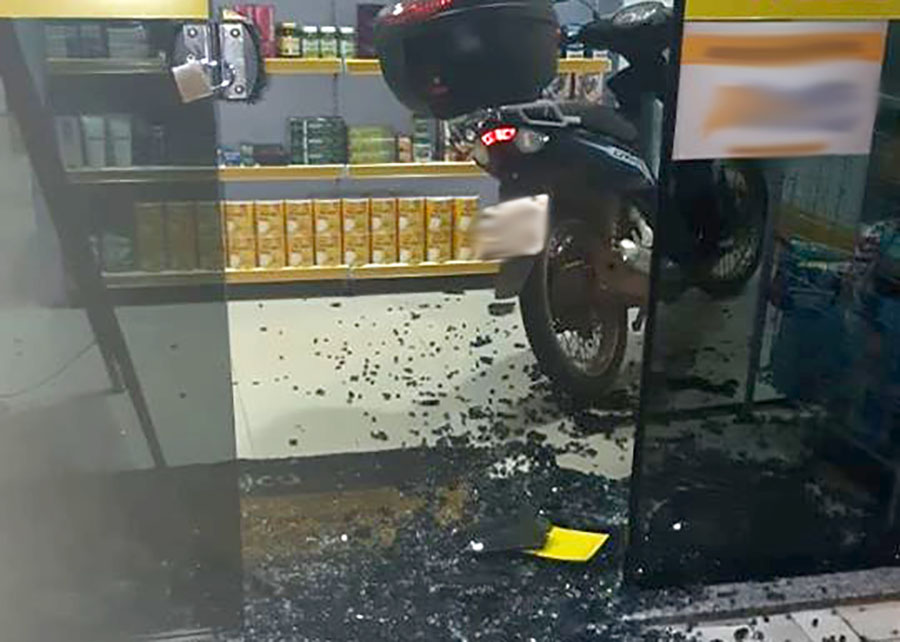 Bandido joga pedra, quebra porta de vidro e furta dinheiro de farmácia em Sinop