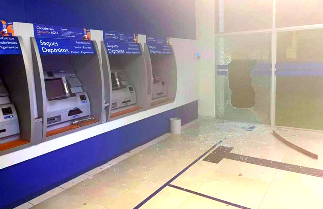 Assim que a fumaça diminui, foi possível entrar no local e os policiais encontraram próximo de um dos caixas uma barra de ferro e uma dinamite. Foi feito isolamento do local e Perícia Oficial e Identificação Técnica fazer as análises.