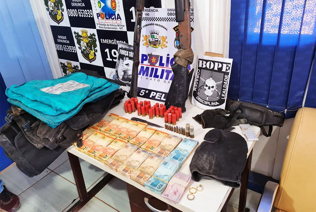 Com ele foram recuperados R$ 50 mil e apreendidos duas espingardas calibre 12, diversas munições, coletes balísticos, joias e materiais de permanência na mata. O BOPE permanece na região buscando ao menos mais dois criminosos.