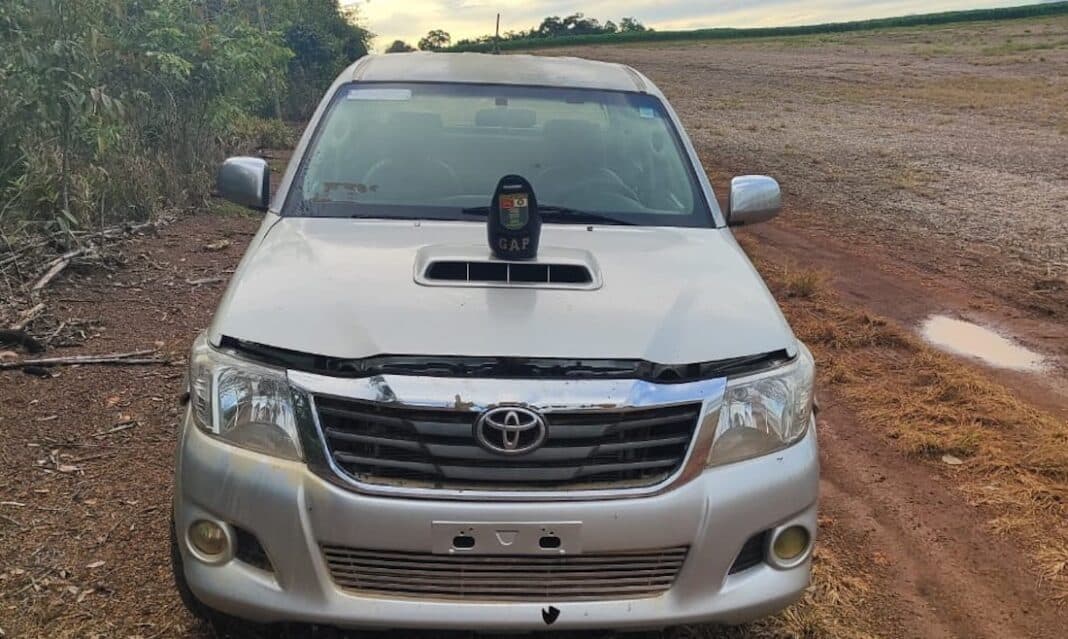 O Grupo de Apoio da Polícia Militar recuperou a Toyota Hilux prata, ontem no final da tarde, na região rural da comunidade Gleba Mercedes. Conforme o sargento Guedes, a equipe recebeu informações de que o veículo estava abandonado e ambas as placas foram retiradas.
