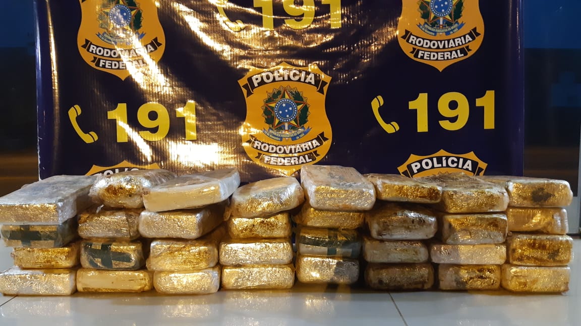 Policiais rodoviários federais apreenderam, neste sábado, 33 quilos de pasta base de cocaína, no quilômetro 17 da BR-070, em Barra do Garças. O entorpecente estava escondido em um fundo falso de um Renault Logan prata, com placas de Porto Velho (RO).