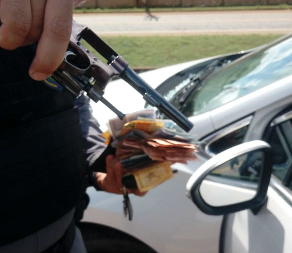 Dois homens foram presos, há pouco, pela Polícia Militar em Lucas do Rio Verde com um GM Cruze branco roubado de uma concessionária de veículos, localizada no bairro Benjamim Raiser, em Sorriso. Com os acusados, os policiais apreenderam um revólver (calibre não informado) e dinheiro.