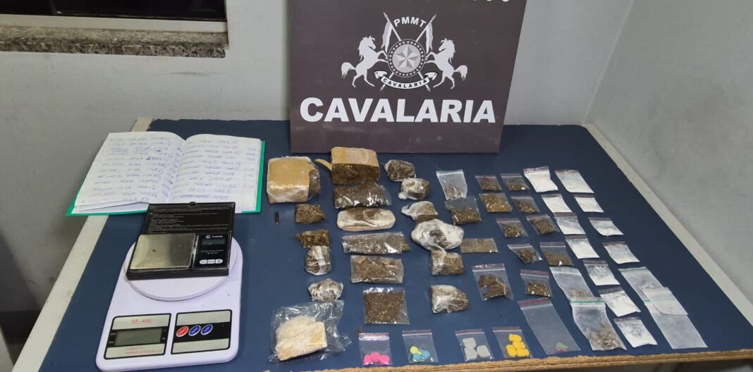 A equipe de Cavalaria da Polícia Militar prendeu, ontem à noite, um casal suspeito de tráfico de drogas, no bairro residencial Carandá Bosque. Foram apreendidos 30 porções e duas metades de tabletes de maconha, 13 porções de cocaína, cinco pacotes com diversas balas de ecstasy e um pedaço de pasta base, além de duas balanças de precisão e um caderno de anotações.