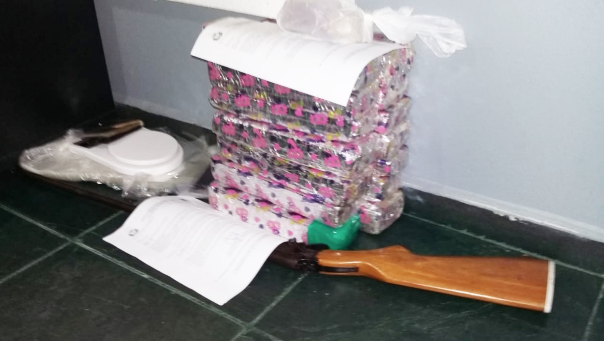 A Polícia Militar prendeu, esta manhã, cinco suspeitos, com idades entre 18 e 65 anos, e apreendeu um menor, de 15 anos, com 14 tabletes de maconha, um de pasta base de cocaína e uma espingarda em uma chácara na MT-140, que liga Sinop a Santa Carmem, após uma denúncia anônima.