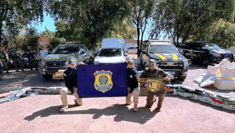 Diante da ausência de comprovação fiscal e considerando a origem fronteiriça da carga, foi acionada a equipe K-9 do Gefron, cujo cão farejador sinalizou positivamente para a presença de substâncias ilícitas. A inspeção resultou na apreensão de 178 tabletes de skunk, 29 tabletes de pasta base, 48 tabletes de cloridrato e 5 tabletes de haxixe.