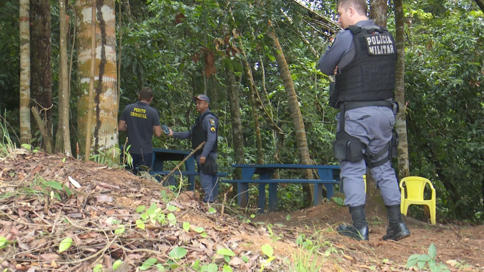 “Fomos informados por uma pessoa que passou por aqui sobre o corpo. A gente localizou embaixo de um banco, próximo a um espaço de eventos, de imediato acionamos a Polícia Civil e Politec para fazer os trabalhos de identificação, de praxe e estamos isolando o local de crime para que seja feita a perícia”, explicou o sargento Almeida, da Polícia Militar.