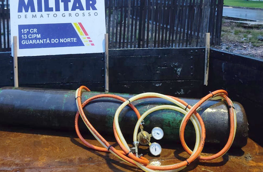 Dois homens, de 23 e 48 anos, foram presos, ontem, pela Polícia Militar em Peixoto de Azevedo (197 quilômetros de Sinop) acusados de furtarem um cilindro de oxigênio, um conjunto de mangueira, manômetro, pistola de maçarico e um compressor de ar de uma oficina mecânica.