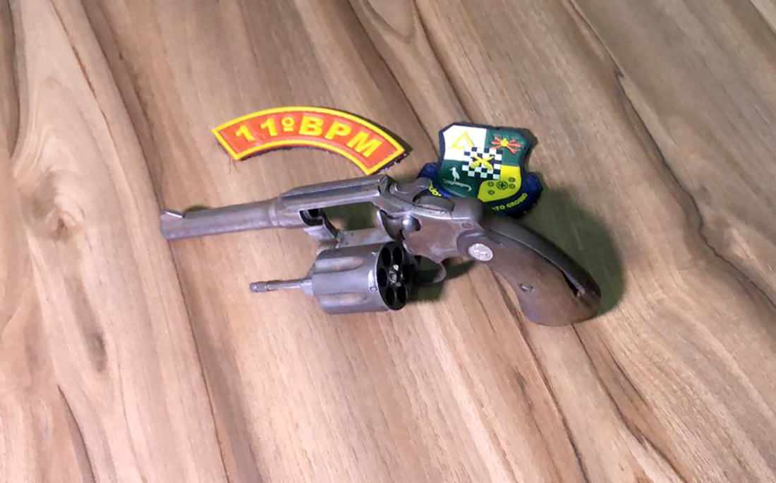 Durante a abordagem, uma mulher, de 27 anos, teria se apresentado a guarnição afirmando que o revólver era de sua propriedade.