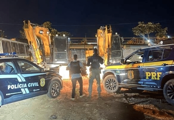 Após informação repassada pelo Centro de Comando Regional da PRF, a equipe se dirigiu a um local às margens da BR-174, onde o rastreador de uma das escavadeiras havia apontado sua última localização. Com apoio de drone da Polícia Civil, foi possível visualizar a máquina sob uma árvore, próxima a uma área de mata. O número de série do equipamento confirmou tratar-se de um dos veículos listados no boletim.