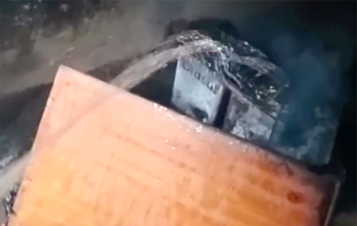 Pouco tempo depois, começou a sair fumaça e foi constatado que havia fogo. Equipes da Polícia Militar usaram abafadores e uma mangueira para jogar água e acabar com as chamas que destruiram uma mesa, armário, estante, cadeiras, entre outras mobílias de madeira.