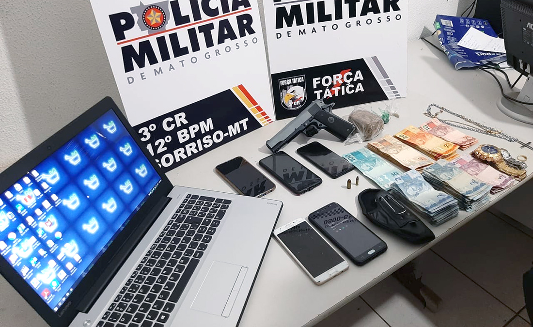 “Nossa equipe em patrulhamento avistou alguns suspeitos em frente a uma residência, que tentaram fugir pulando muro. Foi feito cerco e conseguimos interceptá-los. Foi visualizado que eles deixaram cair entorpecentes e celular. Na residência de um dos suspeitos foi localizado mais entorpecentes e o notebook furtado”, explicou o soldado da PM, Rafael Eloi.