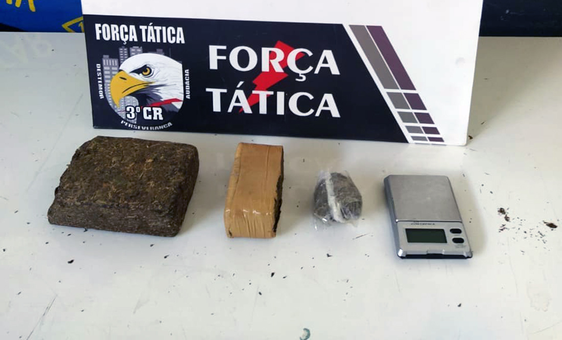 No local, os agentes confirmaram que o veículo era roubado. Na vistoria, foram encontrados dois tabletes de maconha. No imóvel ao lado, estavam os outros dois homens. Com um deles foi encontrada uma porção de maconha.