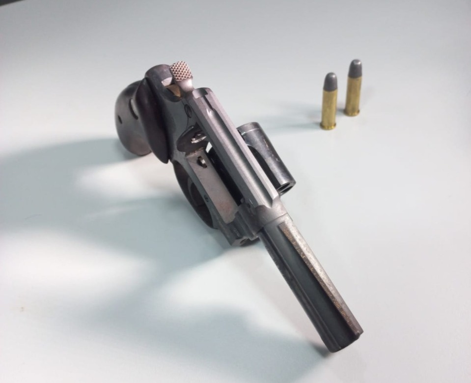 Em revista ao jovem, foi encontrado em sua cintura o revólver com duas munições. Ele foi encaminhado com o adolescente à delegacia de Polícia Civil.