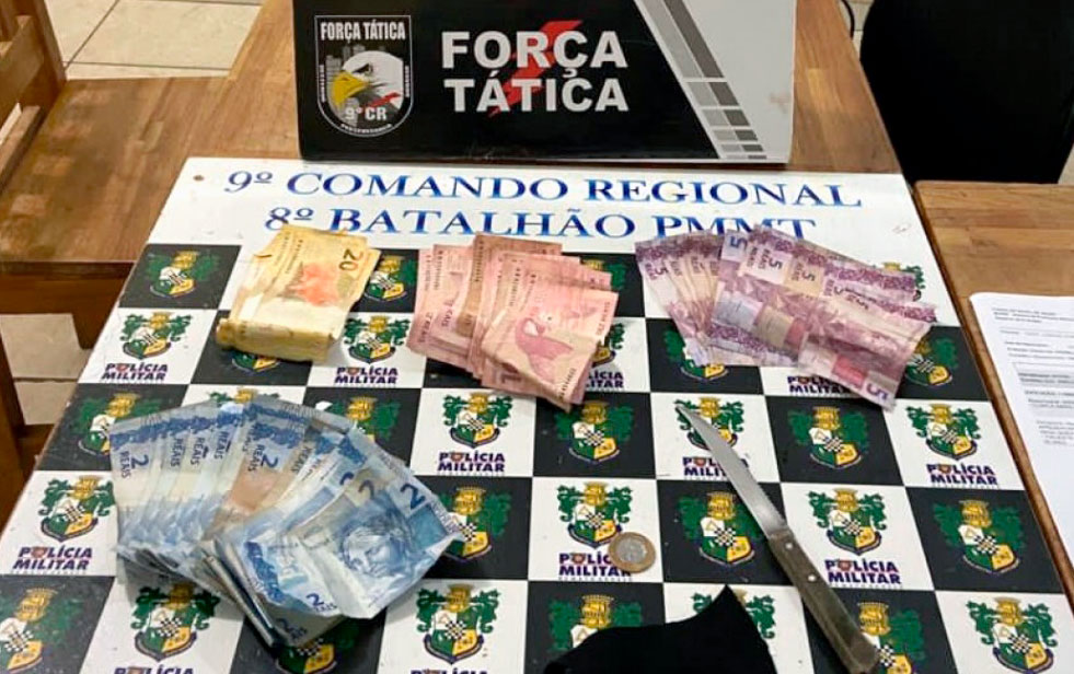 Um homem foi preso em flagrante por policiais da Força Tática, ontem à noite, acusado de invadir uma lanchonete, no bairro Setor Industrial, em Alta Floresta (315 quilômetros de Sinop). Com ele, os militares recuperaram dinheiro (valor não informado) que foi levado do caixa da empresa.