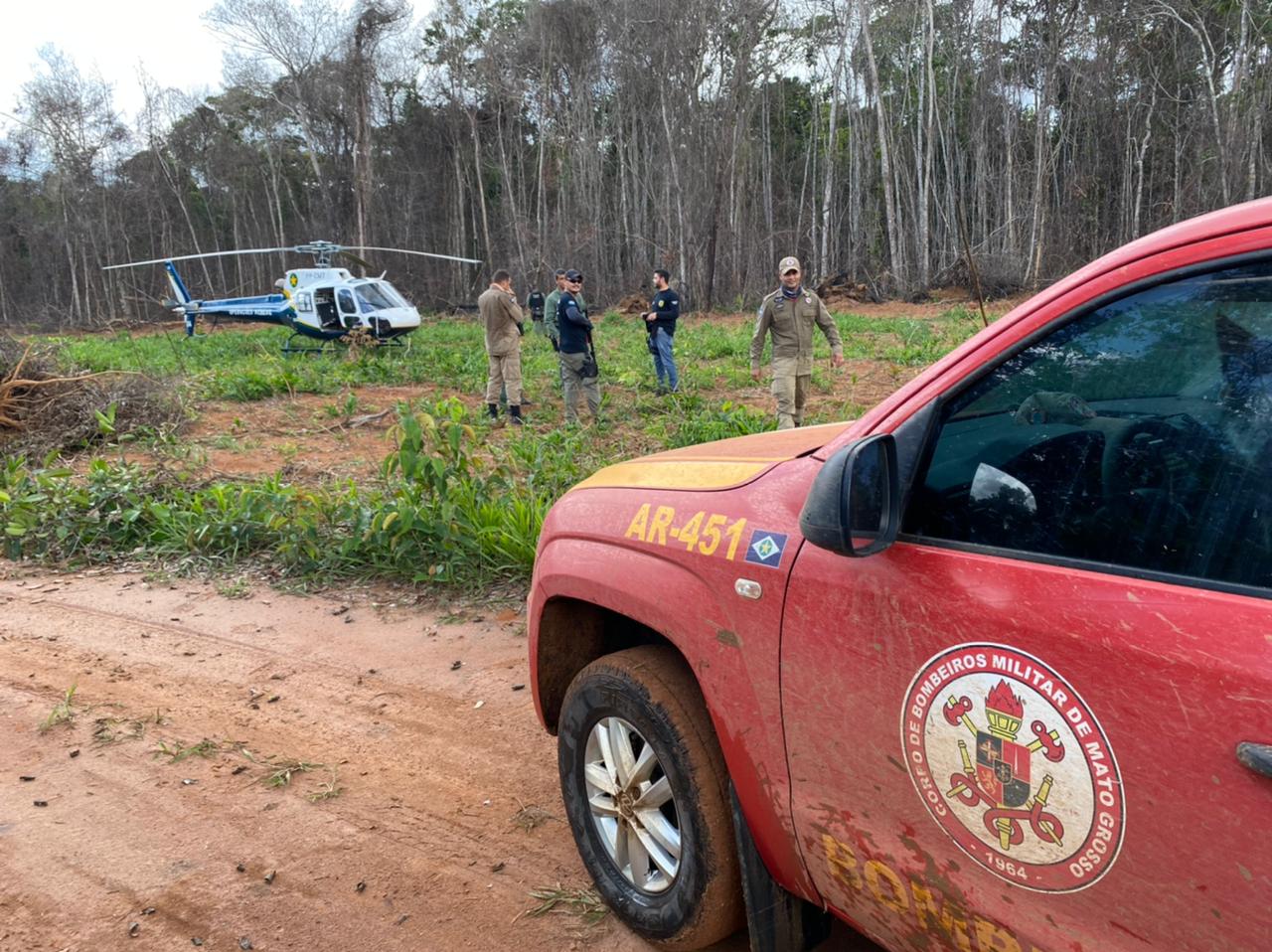 Para as buscas por terra, as equipes do Corpo de Bombeiros contam com o auxílio de um cão farejador. Além disso, foi utilizado o apoio de uma aeronave do Ciopaer para indicar possíveis pontos a serem seguidos pelas equipes que fazem as incursões pela mata.