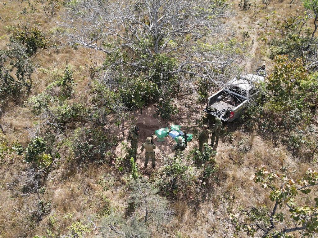 Os policiais localizaram uma abertura em meio a mata e um local onde a terra havia sido mexida, encontrando no buraco 200 tabletes de cloridrato de cocaína (totalizando os 218 quilos de entorpecentes).