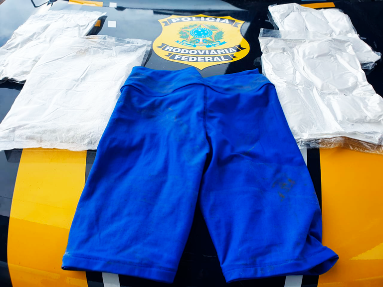 A PRF decidiu fazer uma busca e notaram que na roupa que estava vestido apresentava um volume na região das pernas. Com isso, foi feito uma revista pessoal a qual foram encontrados quatro pacotes de droga presos a bermuda.