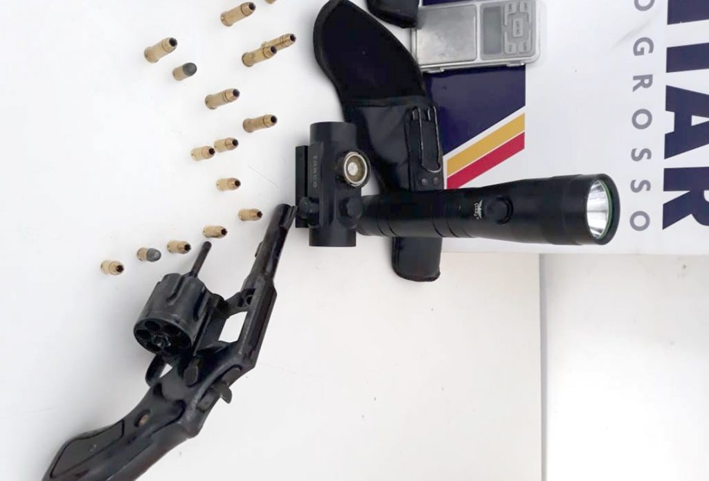 Um homem foi preso pela Polícia Militar, hoje à tarde, em Peixoto de Azevedo (197 quilômetros de Sinop) com uma pistola calibre 380, um revólver 38 e diversas munições dos dois calibres.