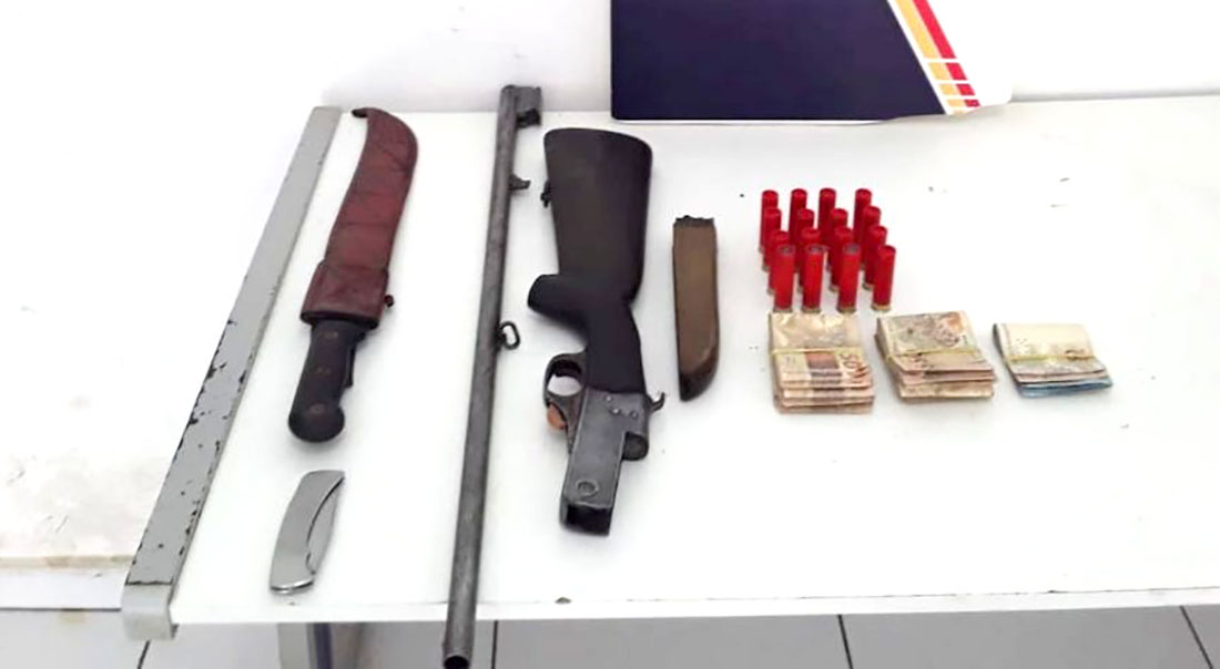 Consta ainda no documento policial que a prisão e apreensão da arma ocorreram após uma denúncia dos moradores. Foi realizada a abordagem e durante busca veicular encontrado a espingarda com as munições. O acusado contou aos militares que o dinheiro seria para pagar os funcionários de um garimpo.