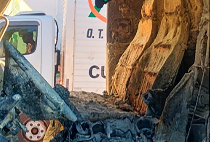 Momentos antes de o incêndio ser provocado, ele foi visto carregando uma garrafa de conteúdo inflamável em uma das mãos. A suspeita é de que teria despejado o material no interior do caminhão.