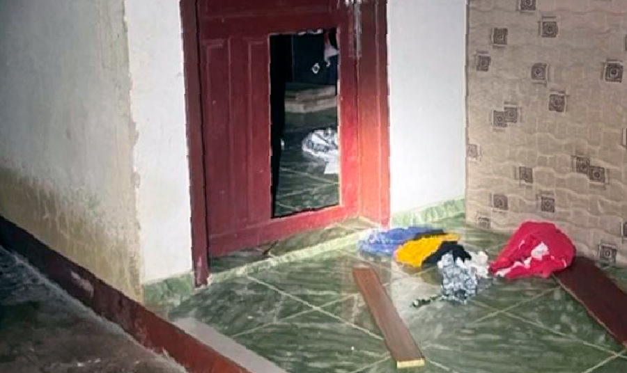 Ele chegou a arrancar pedaços da estrutura e abrir um buraco, antes de ser abordado. Os militares o encontraram vestido apenas com uma cueca. Após algumas tentativas de ordenar que o suspeito se rendesse, ele foi algemado e encaminhado à delegacia de Polícia Civil para os procedimentos cabíveis.