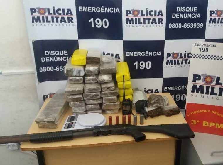 O suspeito, de 30 anos, foi preso, esta tarde, no bairro Planalto, após policiais militares encontrarem no quarto que ele aluga no funcho da casa do tio, 30 tabletes de maconha, além de cinco pedaços grandes e porções da mesma droga, espingarda calibre 12 com seis munições intactas e um rádio HT.