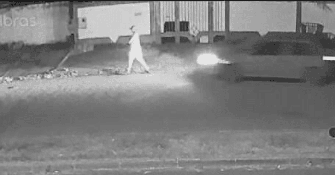 Imagens de câmeras de segurança flagraram o exato momento em que o veículo, conduzido pelo jovem, atropelou a vítima e a arremessou para o alto. O motorista evadiu-se do local sem prestar socorro.