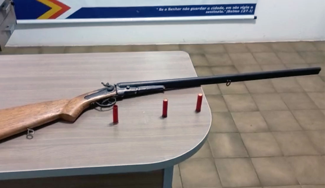 Durante abordagem ao veículo, foram localizadas uma espingarda calibre 32 e três cartuchos do mesmo modelo. Ambos foram encaminhados à delegacia de Polícia Civil.