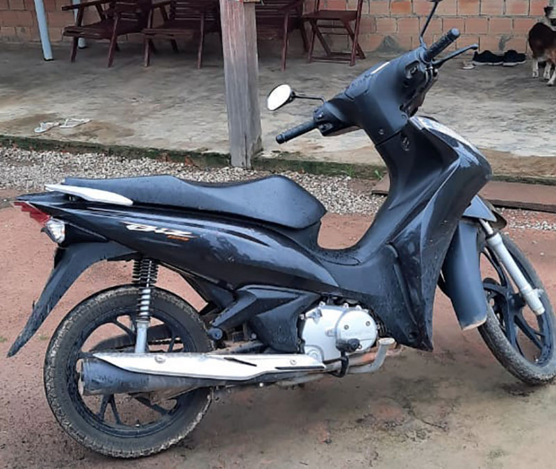 A Honda Biz preta foi recuperada, esta manhã, por policiais militares em uma chácara em Peixoto de Azevedo (197 quilômetros de Sinop). Um homem, 36 anos, que estava com a motocicleta foi preso.