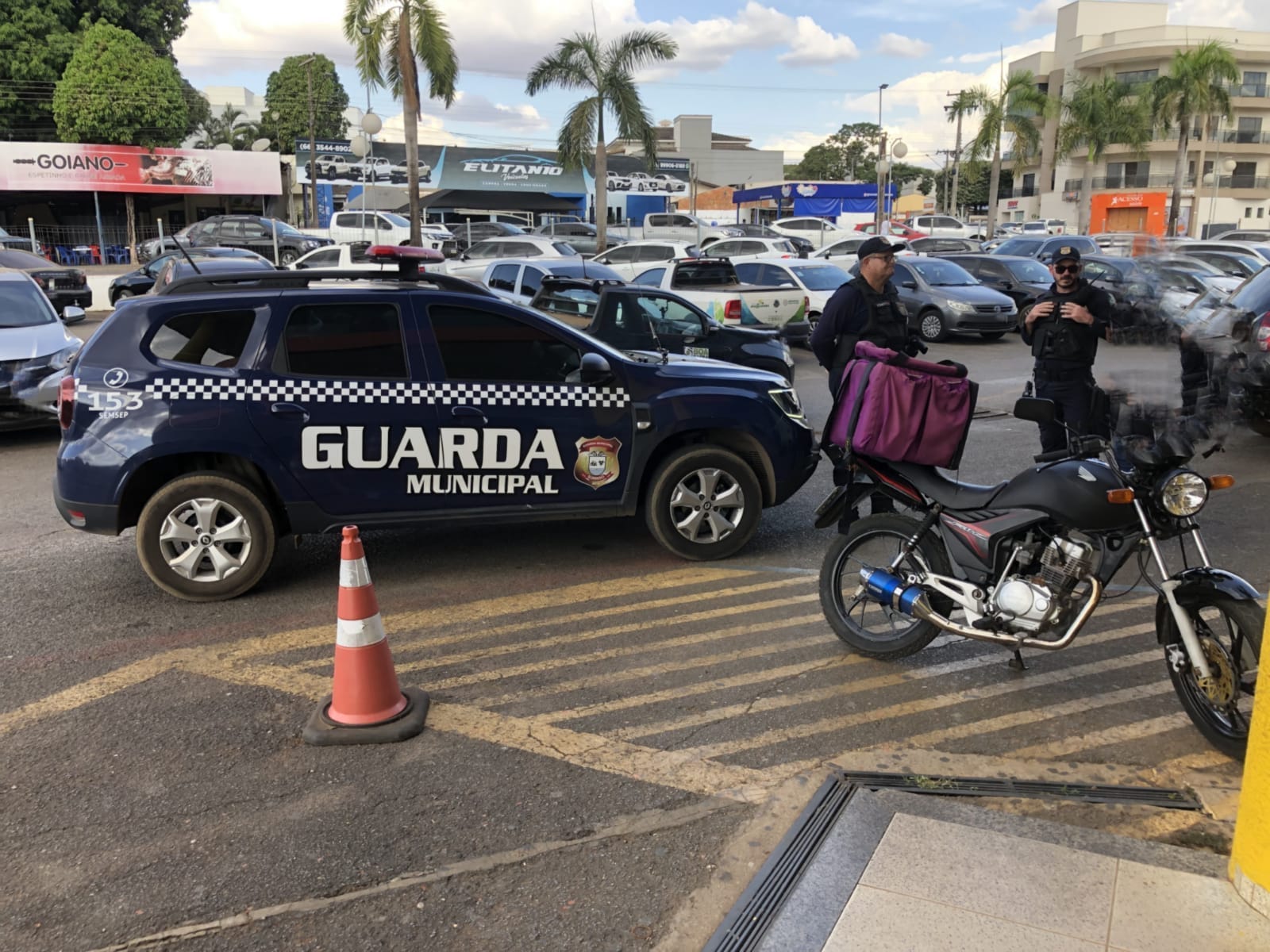A equipe manteve as buscas e foi detido no estacionamento de um estabelecimento comercial. Os guardas constataram que o veículo estava com documento vencido desde 2016, além de irregularidade no escapamento, lacre violado e lâmpada de led no farol.