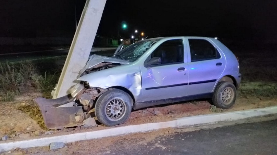 Com o impacto a parte frontal do veículo ficou destruída e o para-brisa quebrou. Por muito pouco o poste não caiu. O carro foi removido por uma empresa de guincho.