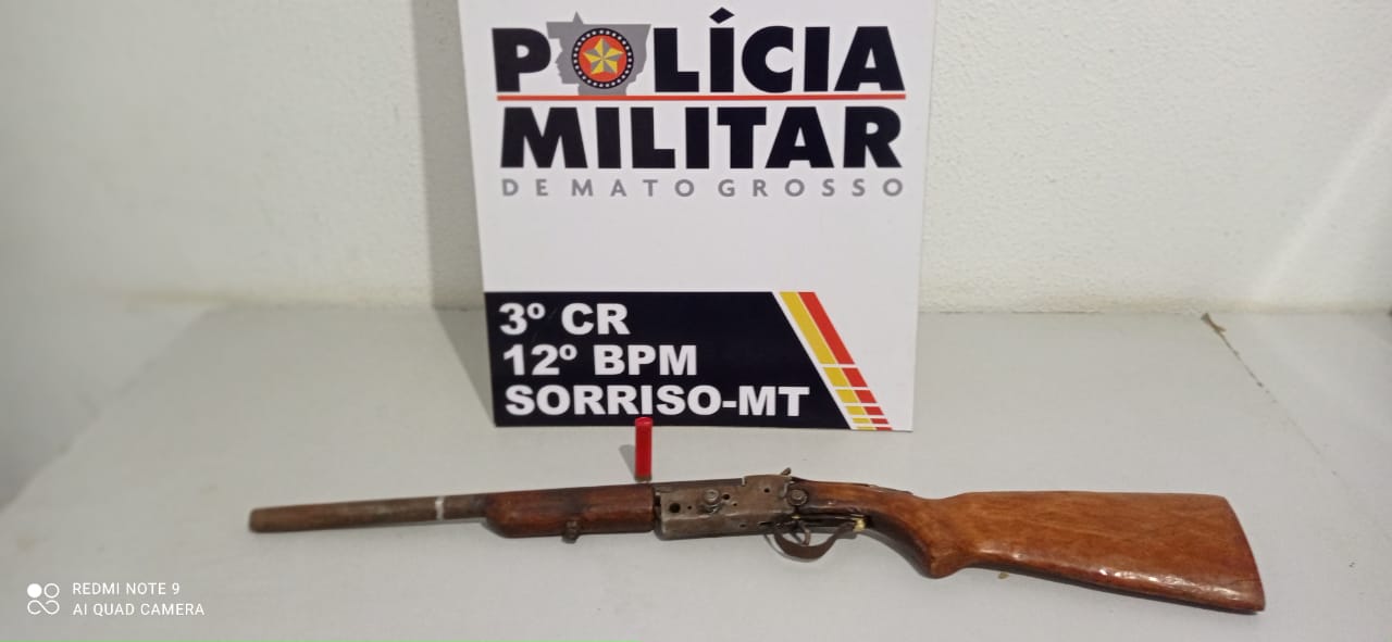 A Polícia Militar apreendeu, ontem, uma espingarda de fabricação artesanal e uma munição intacta. Os objetos foram localizados na residência de uma mulher que foi espancada pelo companheiro.