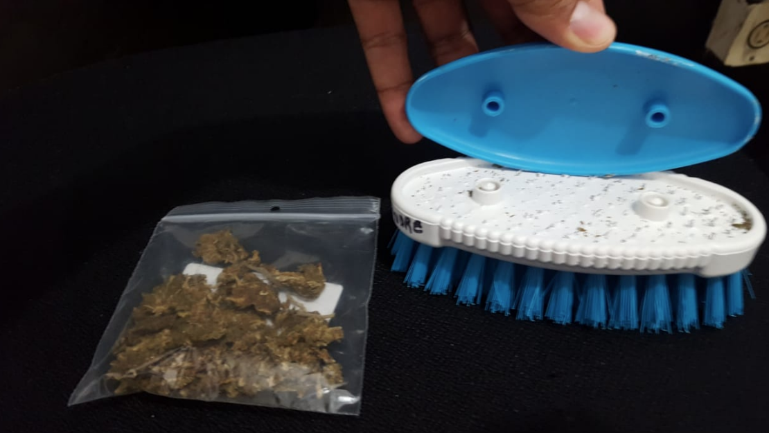 Os agentes penitenciários registraram boletim de ocorrência, ontem, na delegacia de Polícia Civil informando que a suspeita, de 49 anos, foi pega tentando entrar com maconha escondida em uma escova de lavar roupas, que seria entregue para o filho dela que cumpre pena na unidade.