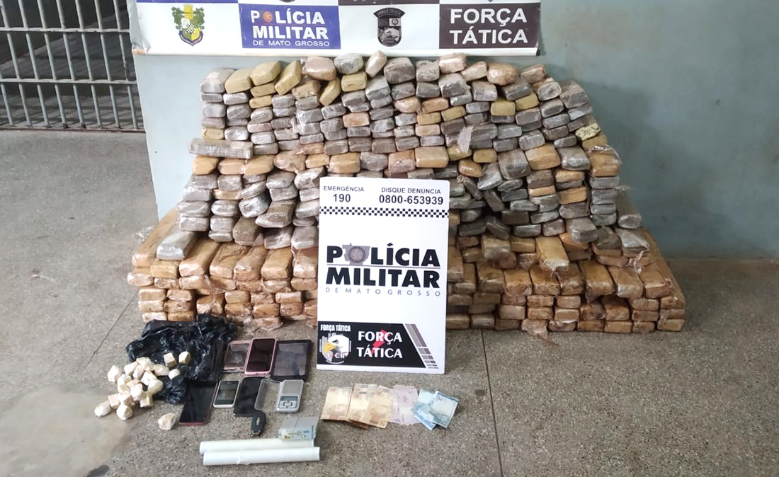 As duas mulheres, de 25 e 18 anos, foram presas pela Polícia Militar acusadas de tráfico de drogas, no bairro Parque Universitário, em Rondonópolis (217 quilômetros de Cuiabá). De acordo com o boletim de ocorrência da PM, os 303 tabletes foram encontrados no fundo falso da carroceria de uma GM S10 e no pneu de um trator que estava na carroceira do mesmo veículo estacionado na garagem de uma residência.