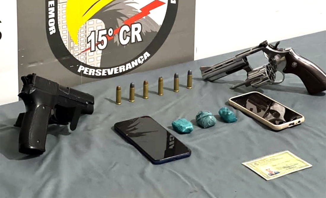 A Força Tática e a Agência Regional de Inteligência da PM investigam uma quadrilha que estaria planejando invadir o “quartel da PM e posteriormente roubar um banco” em Novo Mundo. O suspeito foi localizado e, na abordagem, reagiu. Foi apreendido revólver que estava com uma munição deflagrada e havia 5 intactas, um simulacro de arma de fogo, dois celulares e três porções análogas a maconha.