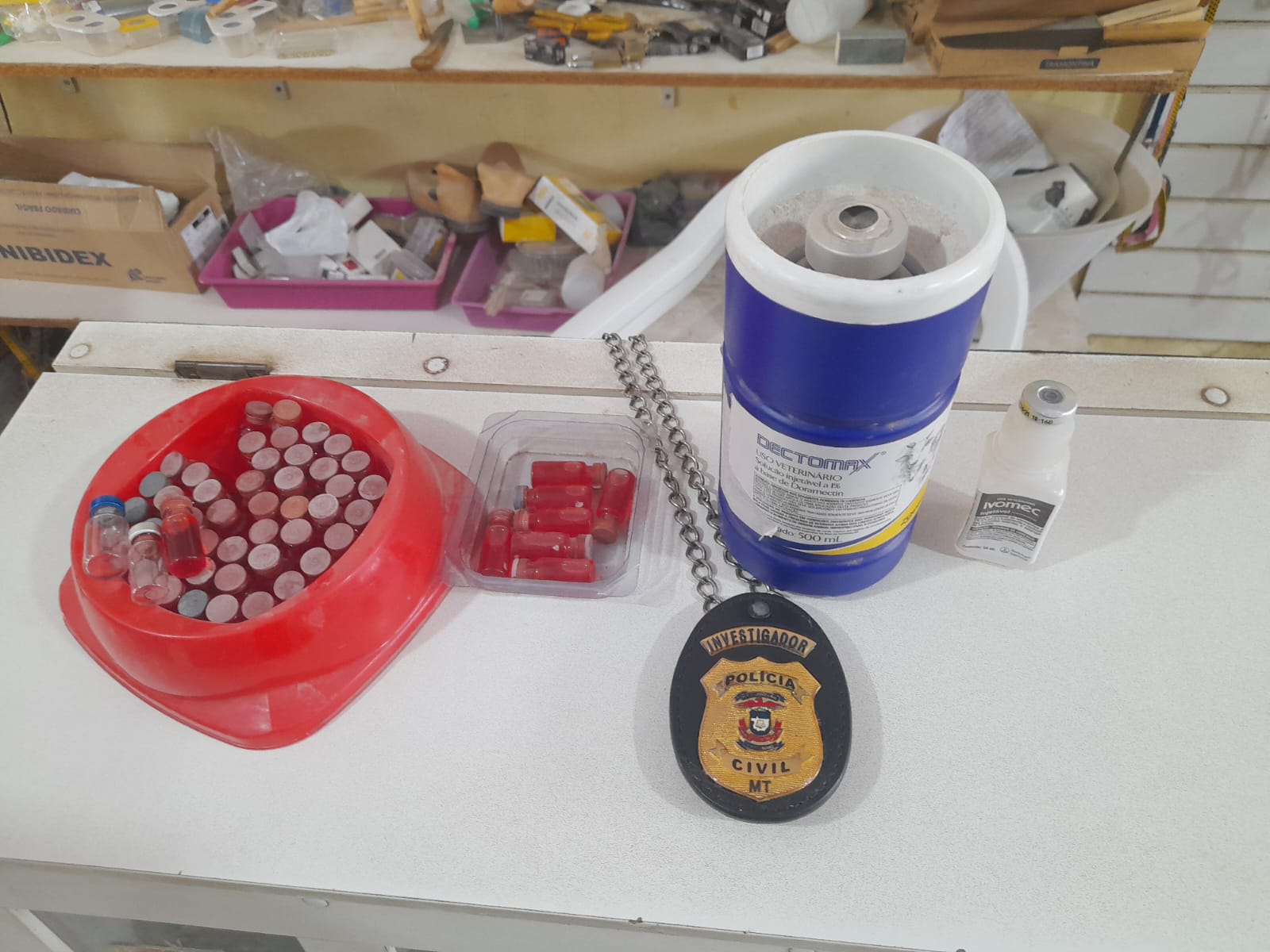 Com relação aos agrotóxicos, o homem disse que adquiriu com uma parente, que reside em um sítio, no distrito de Mimoso, zona rural do município de Barão de Melgaço. Em seguida os policiais civis acompanhado dos servidores do Indea e peritos, foram até os estabelecimentos de propriedade do suspeito, e em uma das lojas foram localizados frascos de produtos análogos a agrotóxicos, além de embalagens de Ivomec e Dectomix, todos usados de forma fracionada.