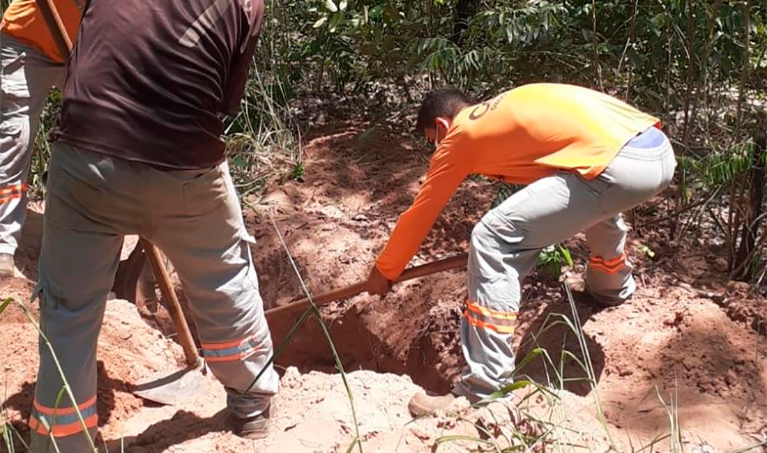 A equipe da DHPP chegou ao local após receber informação de que haveria um corpo enterrado na área. Peritos da Perícia Oficial e Identificação Técnica e o IML foram acionados ao local para o recolhimento do cadáver e encaminhamento para exame de necropsia e de identificação.