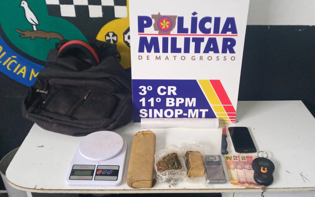 A Polícia Militar apreendeu um adolescente com três balanças digitais, dois tabletes de maconha e uma quantia em dinheiro, em Sinop, ontem à tarde. A apreensão ocorreu na avenida Central do bairro Jardim Roma, quando policiais da Ronda Escolar realizam o patrulhamento. Durante a abordagem foi encontrada uma porção da droga.